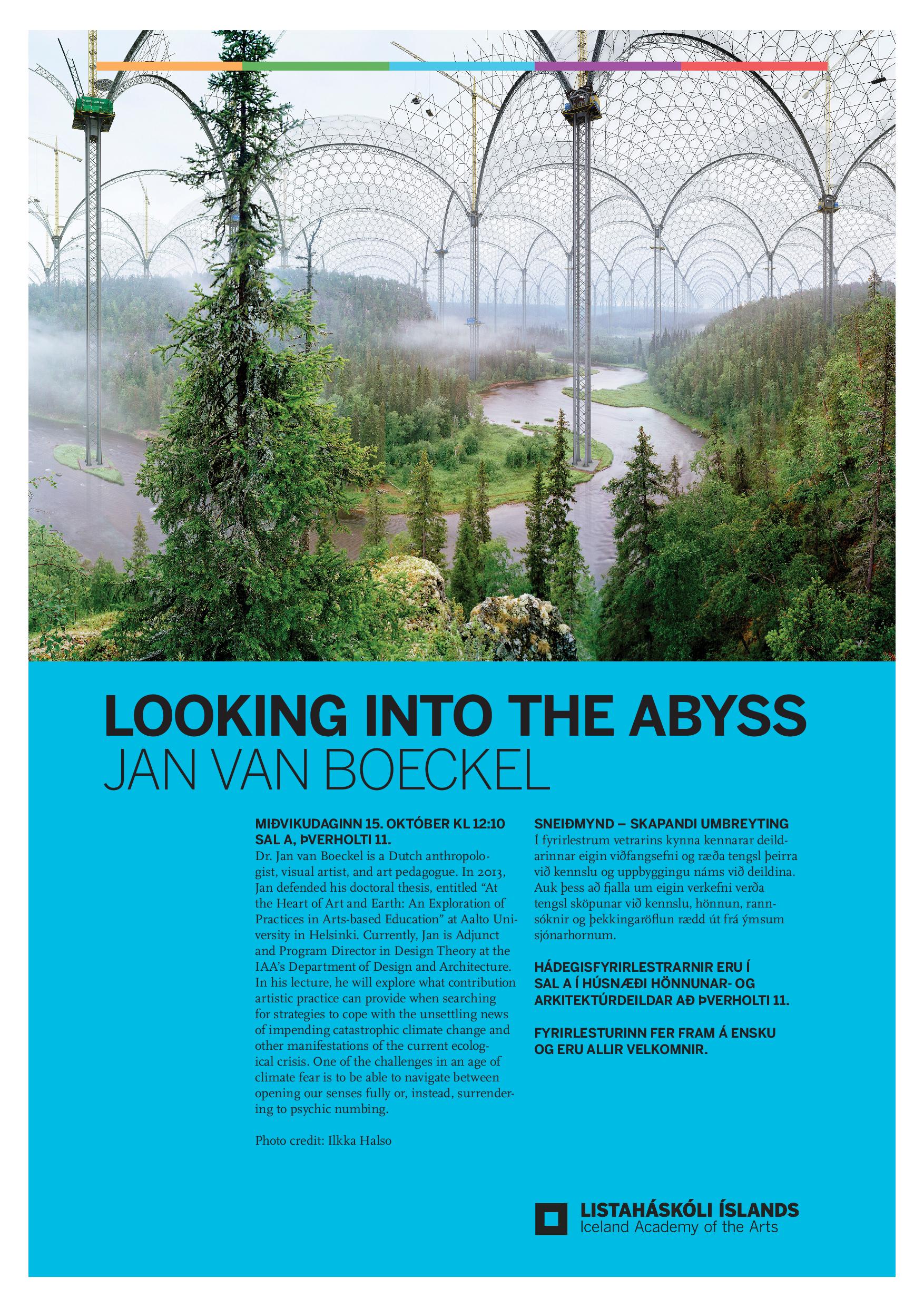 Jan van Boeckel is a Dutch artist-educator and researcher. He was professor art & sustainability from 2020 until the end of 2024 at the Research Centre Art & Society of Hanze University of Applied Sciences Groningen. Currently he is a Senior Research Associate at the Research Centre. From 2018 to 2019, Jan was senior lecturer in visual art education at the Academy of Design and Crafts of Gothenburg University and guest educator and researcher at CEMUS, the Centre for Environment and Development Studies in Uppsala, Sweden. Between 2015 and 2018, he was professor in art education at the Estonian Academy of Arts in Tallinn. Jan van Boeckel has also been program director in design theory at the Iceland University of the Arts in Reykjavik (2014-2015). In 2019, he started teaching painting courses at MK Ateliers in Amsterdam. Jan has regularly taught and facilitated courses at places like Schumacher College in Dartington, the UK; at University College of Southeast Norway; and at CEMUS in Sweden.