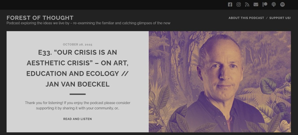 As part of the podcast series Forest of Thought, Ingrid Rieser recorded an hour-long conversation with Jan van Boeckel in Rauland in 2025. Both were sitting outside among the heather on a warm summer afternoon. The title of the talk is: “Our crisis is an aesthetic crisis.”