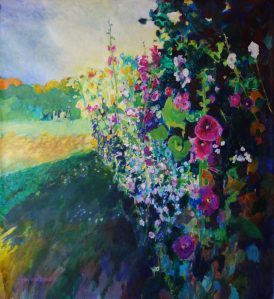 Hollyhocks in last sunlight